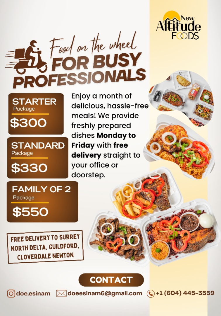 The Altitude Foods is a boutique African cuisine company, making homemade specialty products and providing a range of catering services. Based on Vancouver, British Columbia, our authentic African fare is available across Metro Vancouver. Esinam Doe and her team at The Altitude Foods are delighted to share their culture and cuisine with the people of BC and beyond.Take dinner to a new level and try one of our sauces today!
